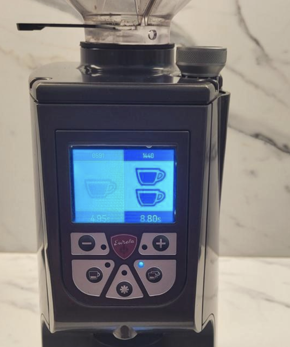 Te Koop, weinig gebruikte (nog geen 2000 malingen) Eureka Atom Specialty 65 Koffiemolen.