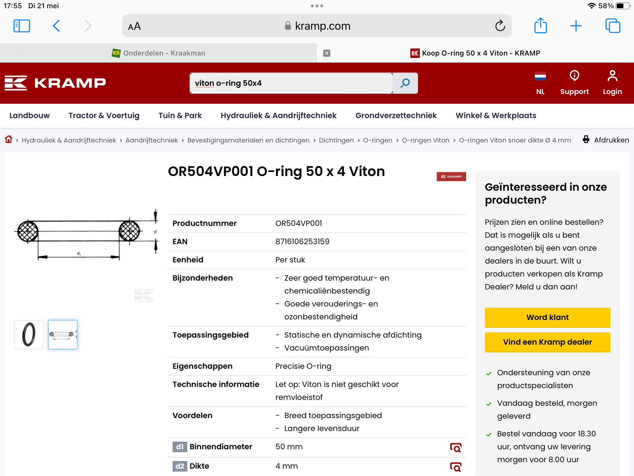 De groene O-ring lekte bij mij nog steeds, was wel benieuwd of het ‘tractoronderdeel’ niet in de olie zat of zo, maar er is geen zichtbaar (behalve de kleur dan) of voelbaar verschil met de groene O-ring.