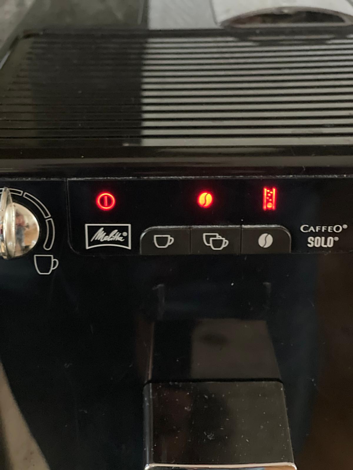 Maar goed, de volgende stap is een reinigingstablet in de zetgroep doen en dan op het boontje knopje drukken. De aandrijving gaat dan in werking en de zetgroep komt dan in de positie van 'zetstand'. Als het knopje niet werkt, dan werkt de aandrijving niet of het knopje werkt niet. Gegeven het feit dat ik nog niet eerder heb gehad dat een knopje van een Solo niet werkte, vermoed ik dat de aandrijving defect is (zeker als de machine van bouwjaar 2017-2018 is (foute serie)).