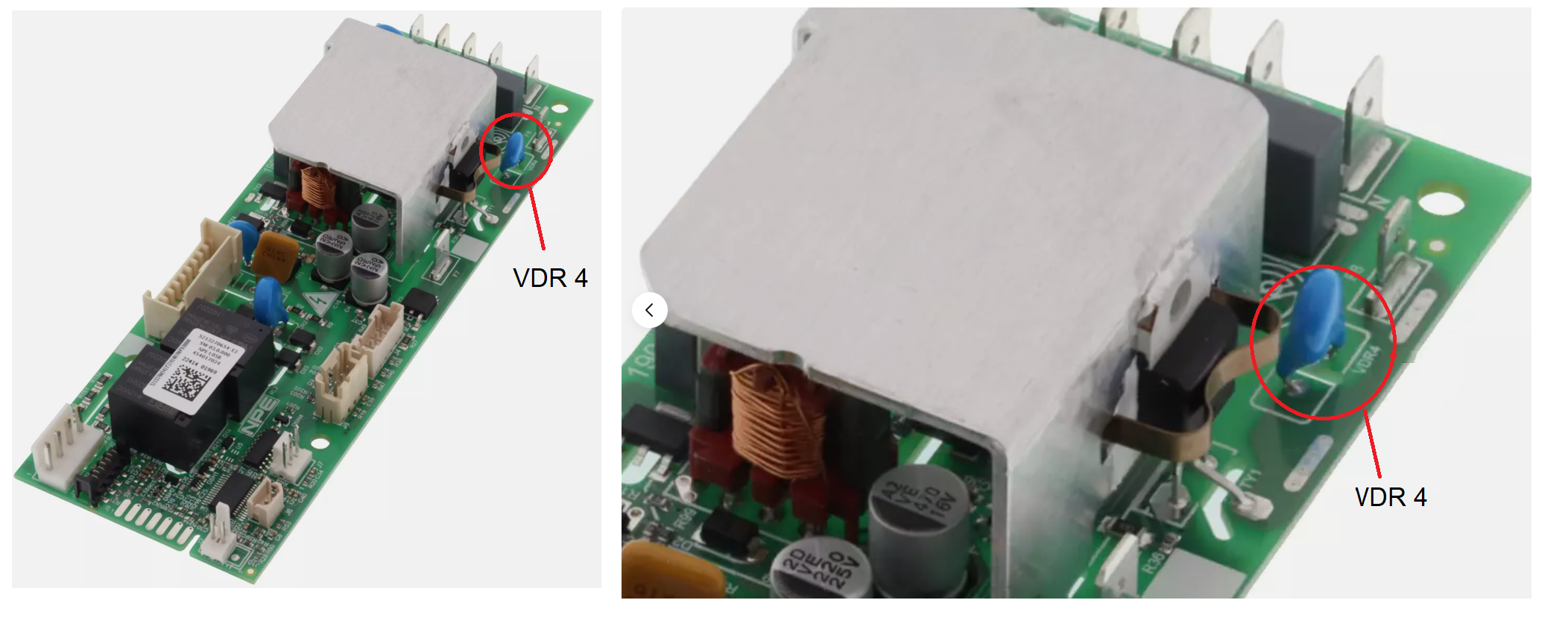 Door een overspanning is er een VARISTOR (Foto : VDR 4) doorgebrand.