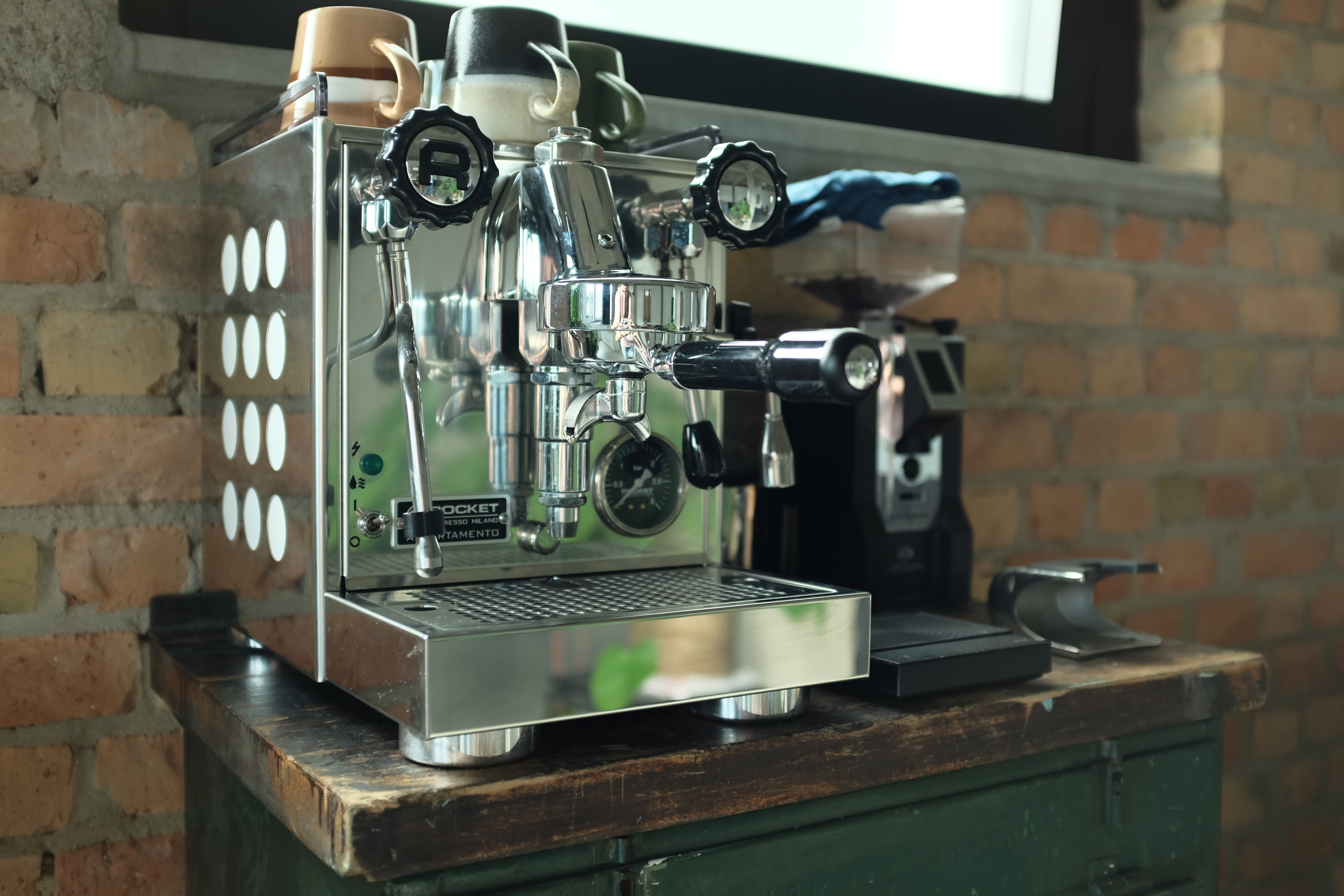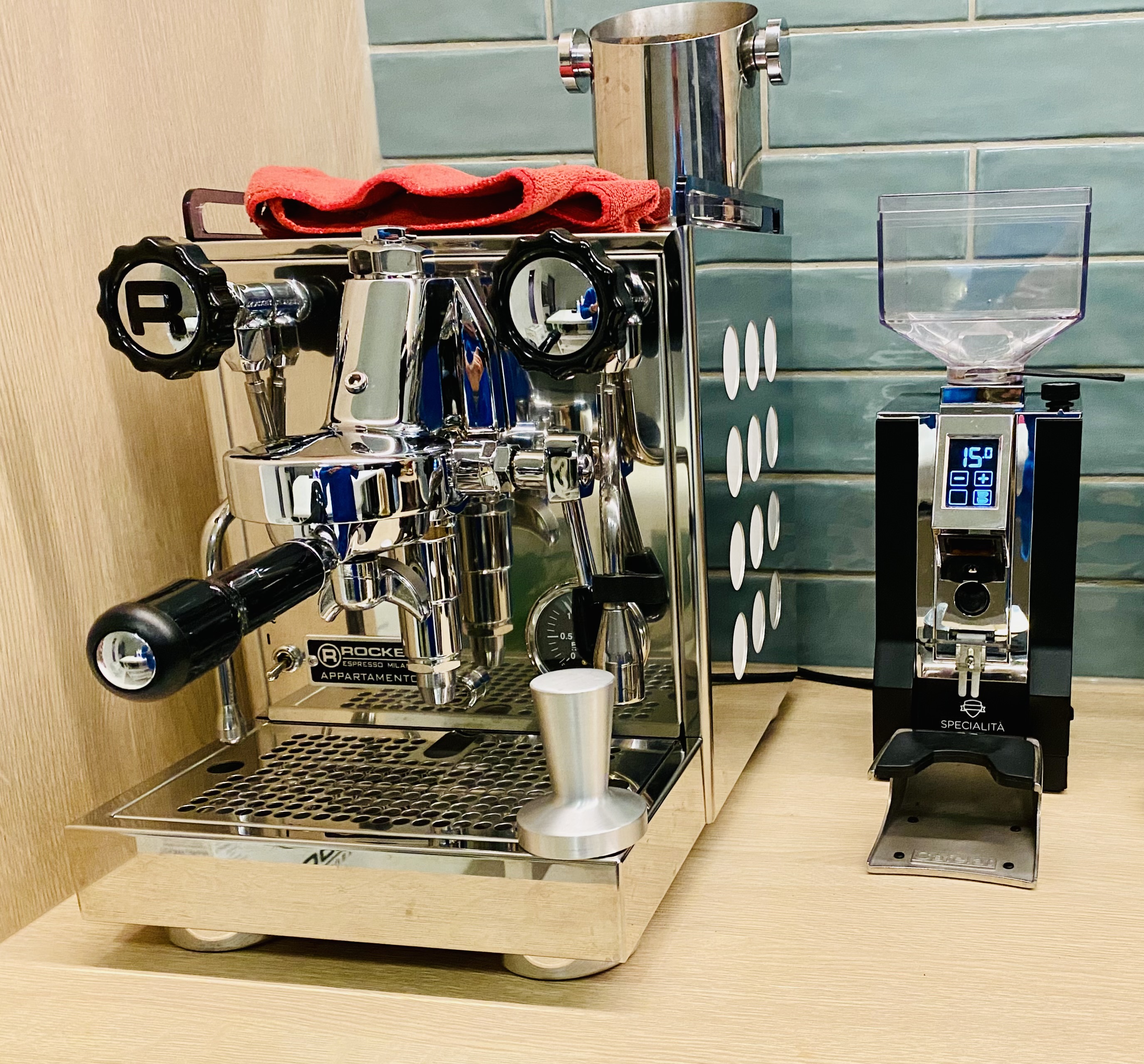 (VERKOCHT) Rocket Appartamento espressomachine samen met een Eureka Mignon Specialita molen