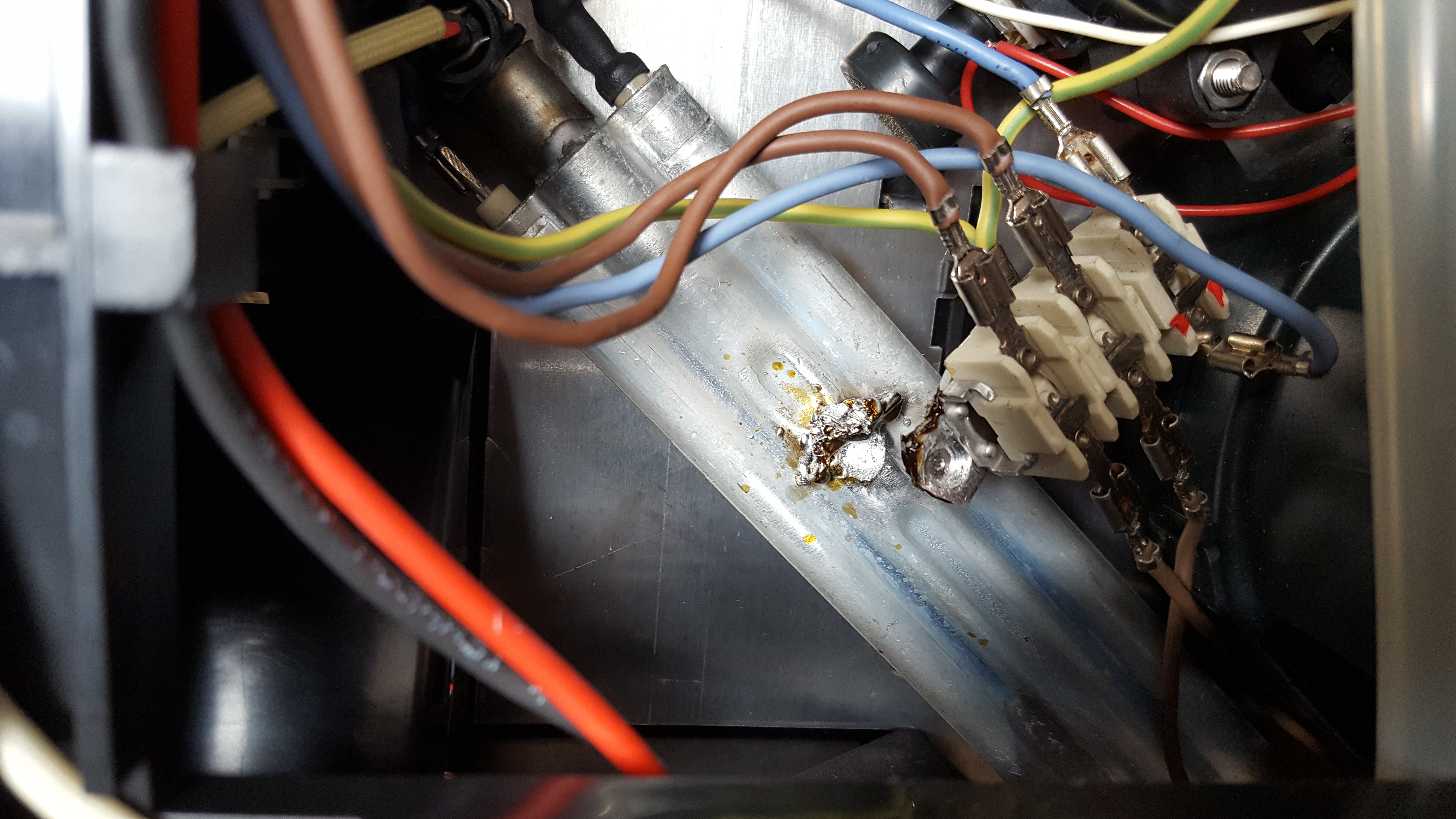 Ik heb pasgeleden een EQ7 uit elkaar gehaald om deze even na te lopen. Ik heb deze overgenomen via marktplaats en merkte dat hij al uit elkaar is geweest. Ik wilde graag checken of er geen 'rare dingen' in gebeurd waren. Op zich ziet alles er redelijk uit, er is alleen een probleem met het verwarmingselement. Hier zit normaal gesproken de bekabeling aan vast met een las/soldeer verbinding. Er hing een hele klont soldeer aan en wat soldeervet. De kabelterminal hing echter los er naast. Voor zo ver ik het kan bepalen zit het hier aan vast vanwege de aarde. Ik ben ook bij Gino langs geweest (Esprase) en ook hij gaf aan dat het vervangen moet worden. Ik heb alle vertrouwen in zijn oordeel maar hoor het uiteraard graag als iemand hier een soortgelijk probleem is tegen gekomen en eventueel een goedkopere oplossing heeft. De warmteunit werkt overigens wel gewoon, maar ik ben bang voor eventuele gevolgen wanneer het systeem geen aarde heeft en het wel nodig heeft. Tips zijn welkom! Alvast bedankt.
