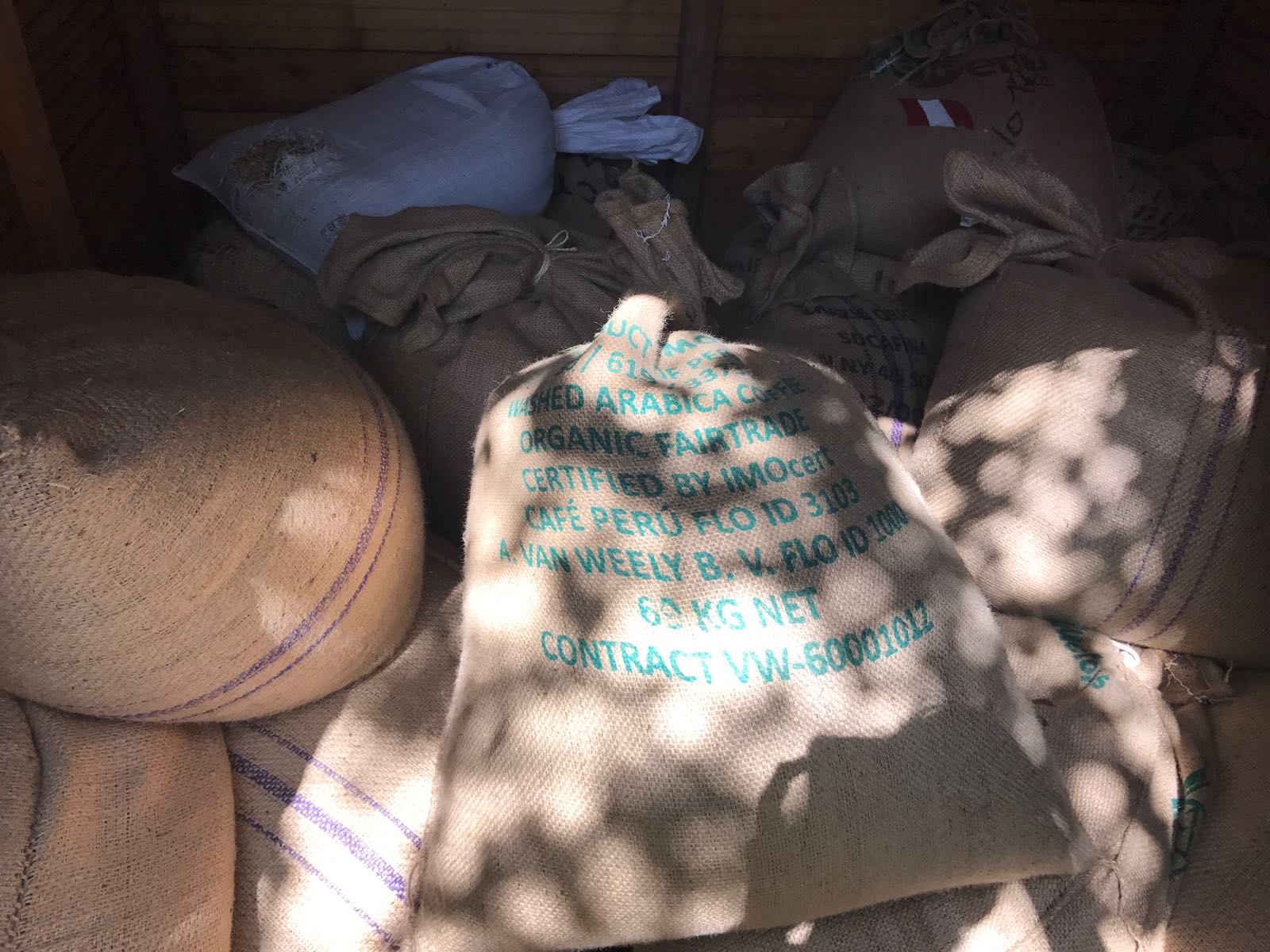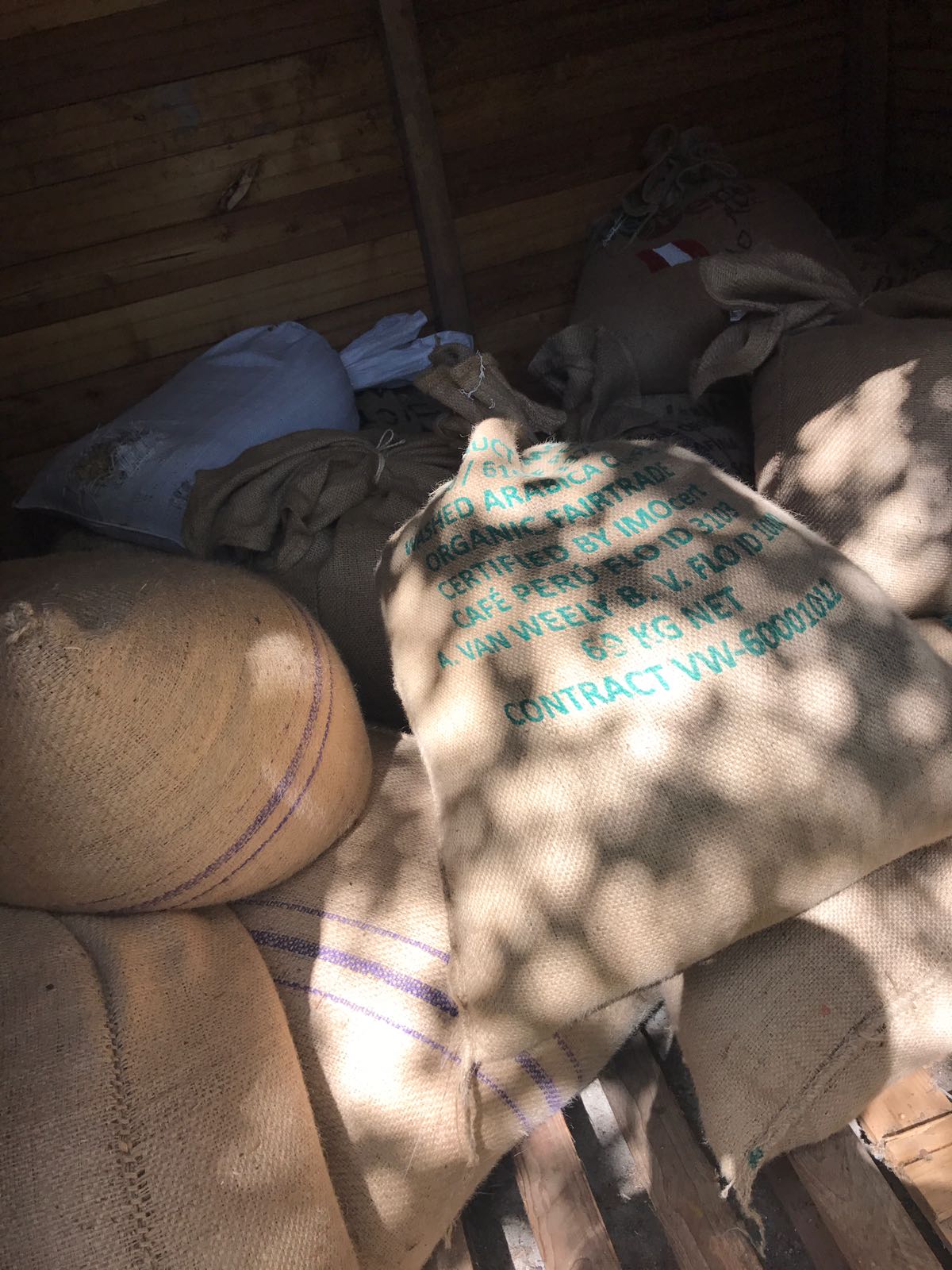 Er liggen een stuk of 12 jute zakken in dit schuurtje, gevuld voor zo´n 30 à 40kg elk.
