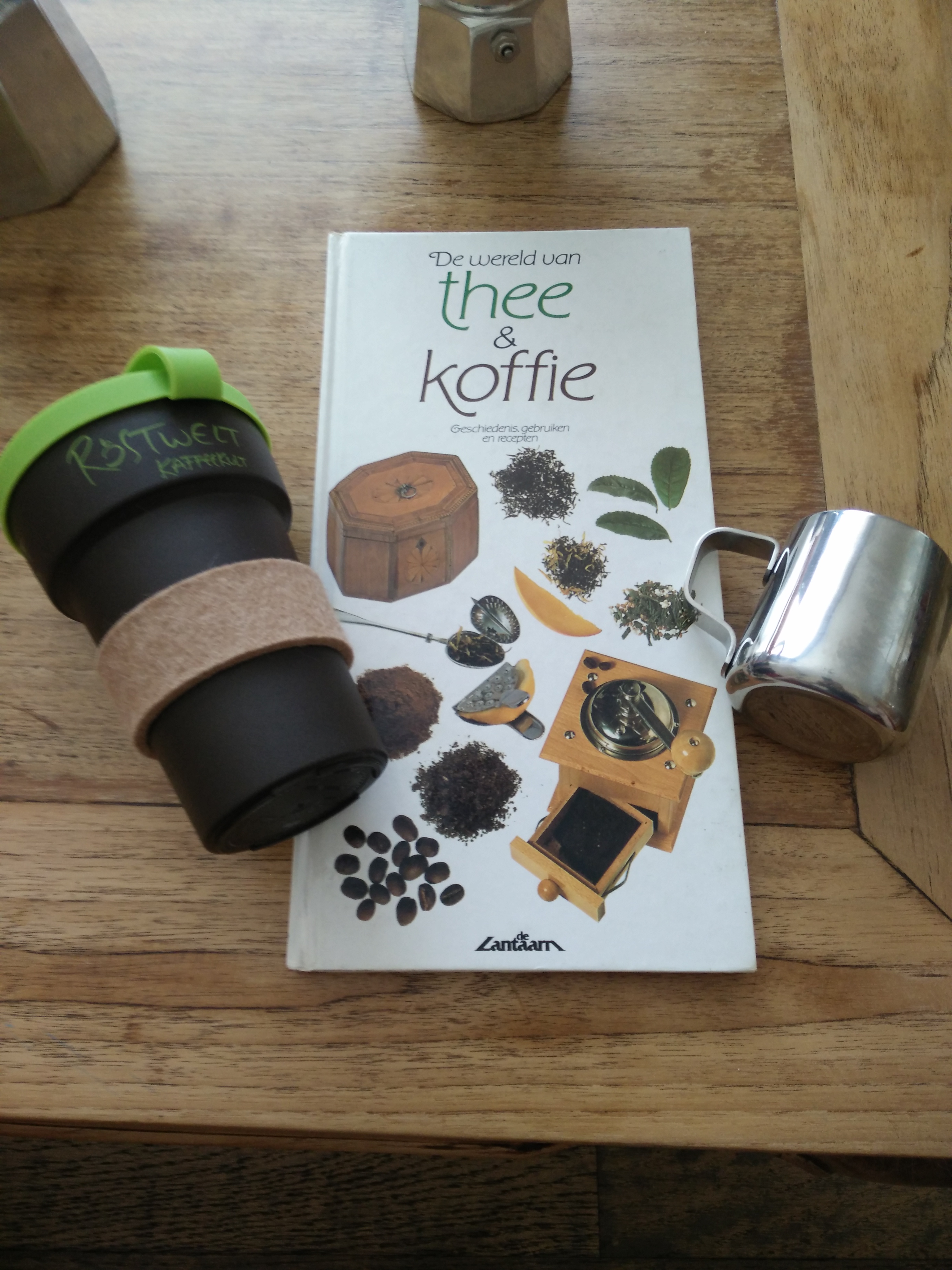 Koffieboekje, reisbeker van gerecycled chaff, mini melkpitcher.