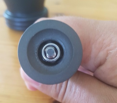 1. Horizontale speling; om de horizontale speling van de Skerton in te perken, is het mogelijk om een extra "lager" onderin het product aan te brengen. Dit kan je zelf maken, of aanschaffen bij Blue Horse Products (amazon) of Orphan Espresso. Ik heb zelf die van BHP gekocht. Zie eerste afbeelding voor de ring, tweede afbeelding zoals gemonteerd op (mijn) Skerton.