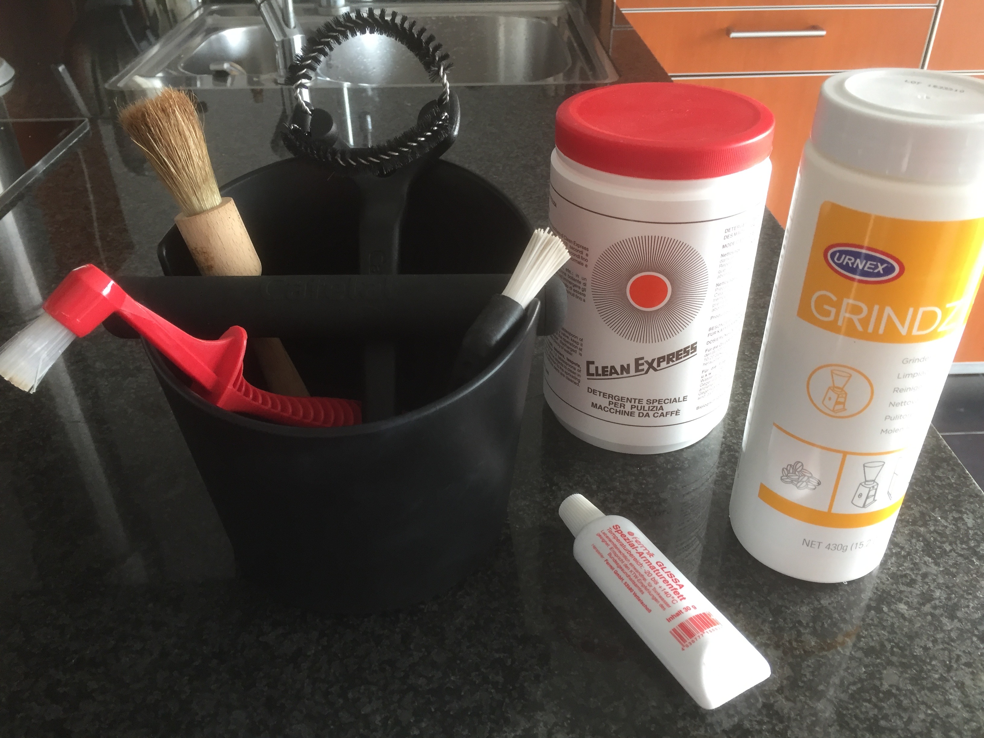 Machine komt met: 2 portafilterhouders, waarvan 1 naked, 2 uitlopen (enkel en dubbel), 5 filterbakjes waaronder 2 IMS (24.5 & 26.5) en een geplaatst IMS douchescherm. Ik doe er ook de schoonmaakspullen bij waaronder Cafiza en een groepborstel zodat de nieuwe eigenaar gelijk aan de slag kan.