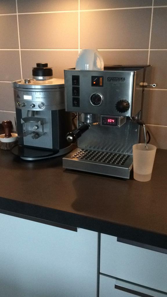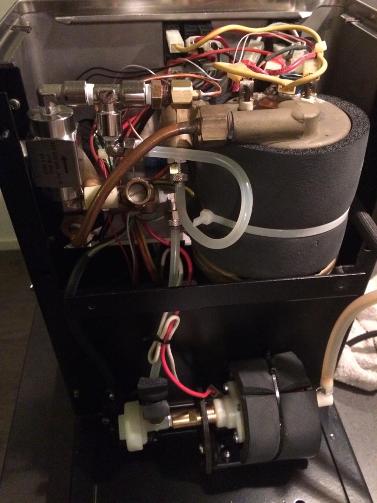 Zo zie je maar dat je met het nodige DIY werk van een eenvoudig single boiler machientje van meer dan 20 jaar oud een moderne state of the art machine die een veelvoud kost kan nabootsen.